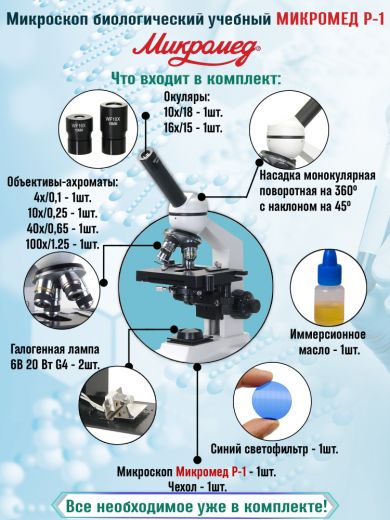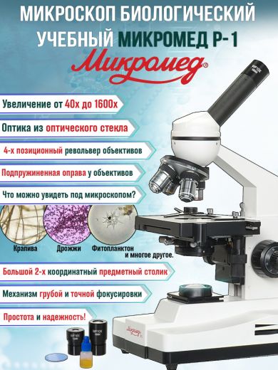 Микроскоп Микромед Р-1 представляет собой отличный инструмент по соотношению “цена-качество” для применения в учебной практике и работе в микробиологии.