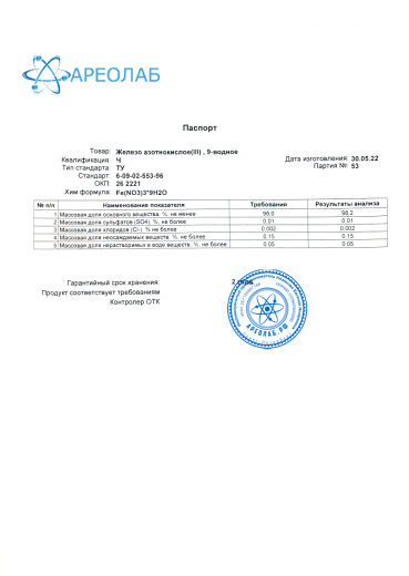 Железо азотнокислое (нитрат) (ч), 10 кг